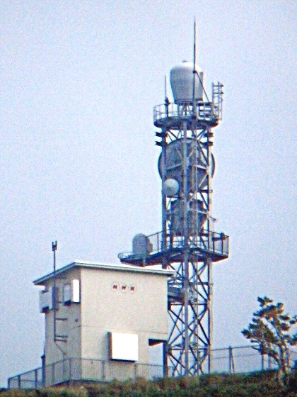 電波塔が林立しています。 NHK固定局は、左から4番目の施設と思われます。また、そのすぐ右隣の施設にも注目です。