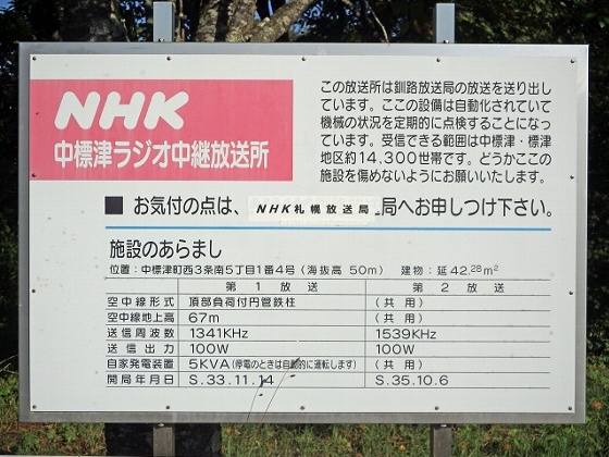 看板によると、中継局の管理が釧路放送局から札幌放送局に変わったようです。