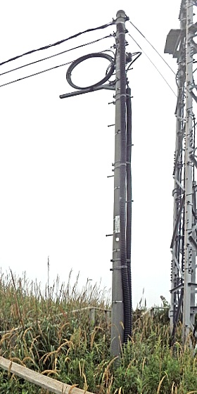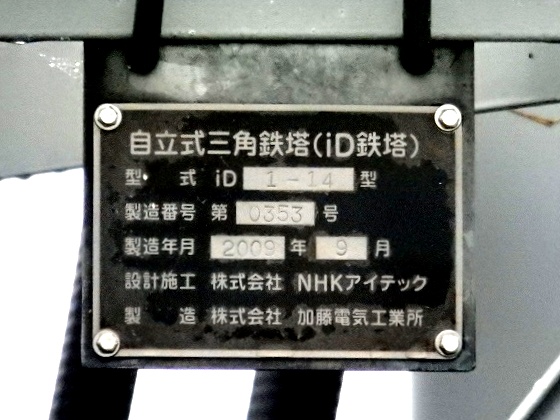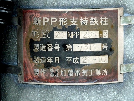 |  伝送線の鉄塔があります。 |  銘板です。 新しい日付です。 |