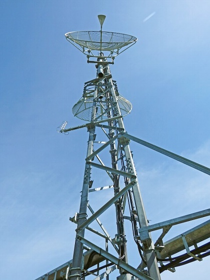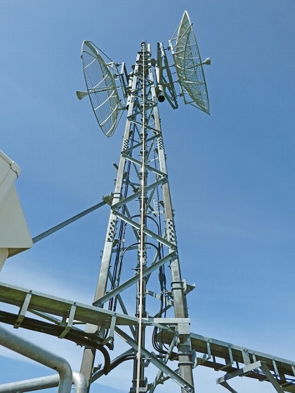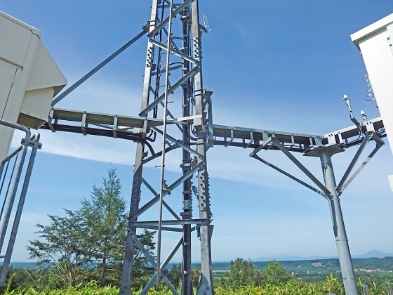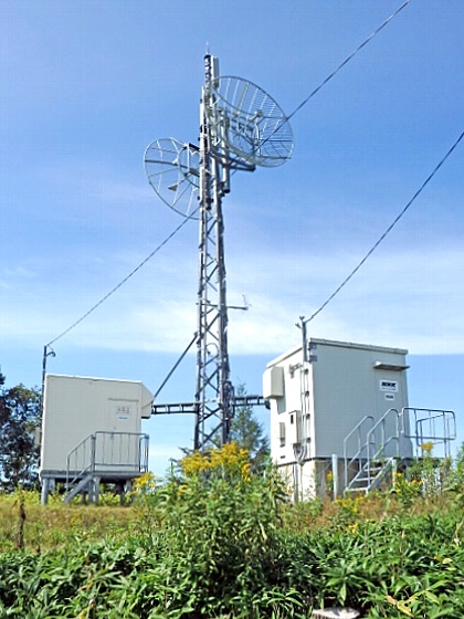 送信アンテナは個別の4L1段1面(上段がG)です。受信は送信点で共用3mプレートパラボラにて標茶中継局受けです。