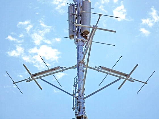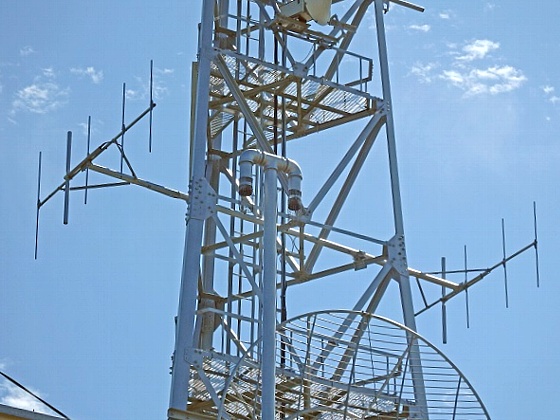 共用できず、単独で3素子八木1段3面が鉄塔先端に取り付けられています。