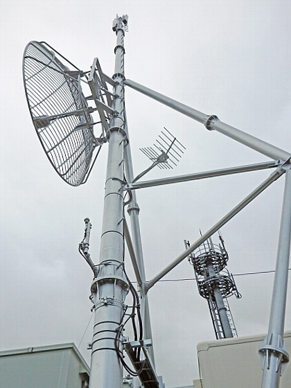 受信は、全社送信点でNHKは2波個別の4mプレートパラボラ、民放は4社共用4mグリッドパラボラです。