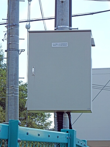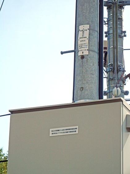 |  機器に付いている表示です。 |  鉄塔に付いている表示です。 |