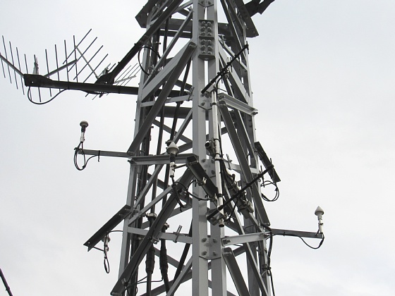 ![]() 鉄塔中間部です。 GPSやモニターアンテナがあります。 |