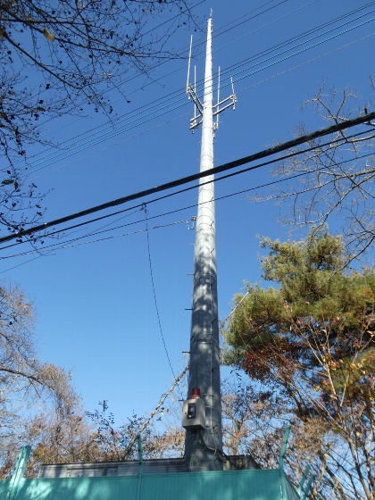 ![]() こちらは、少し離れた場所にある 「東京電力牛伏山無給電中継所」のパラボラです。 周波数7.5GHz帯 3m2面です。 |