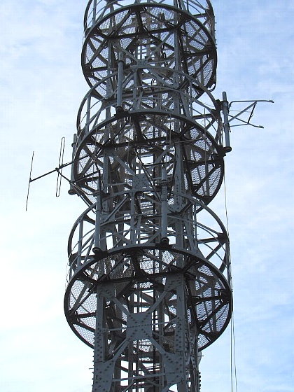 この鉄塔がテレビ中継局なのか、さらに観察すると先端部にリングアンテナと思われるものが4段設置されています。