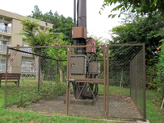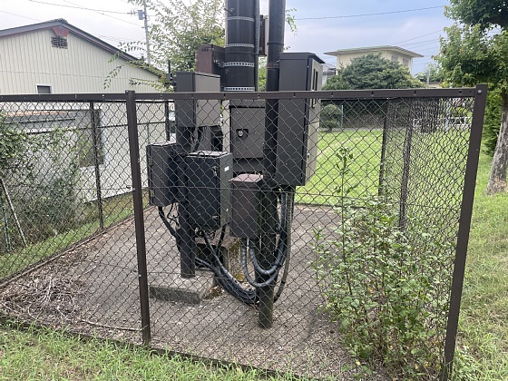 |  別角度からの遠景です。 |  こちらも目立たないように、こげ茶色に塗られています。 |