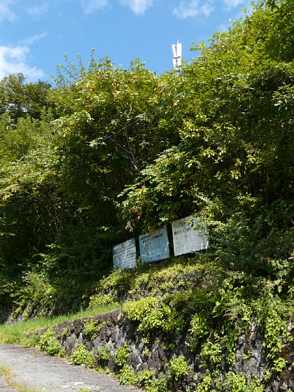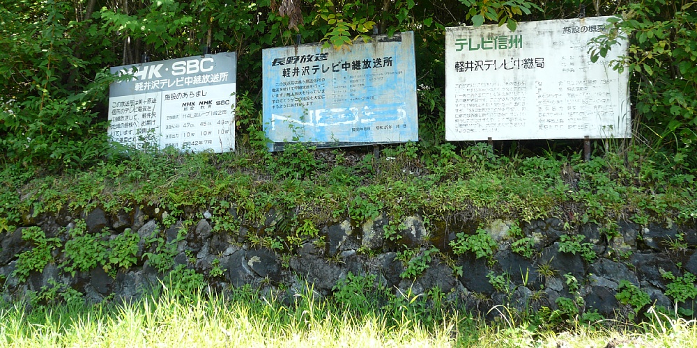 中継局直下の道路沿いに看板が3枚並んでいます。
