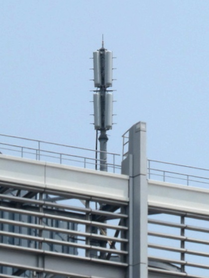 アンテナは低い位置にありますので、付近のビルに遮られ果たしてどこまで電波が飛んでいるのか、現場で見て若干疑問を感じました。
