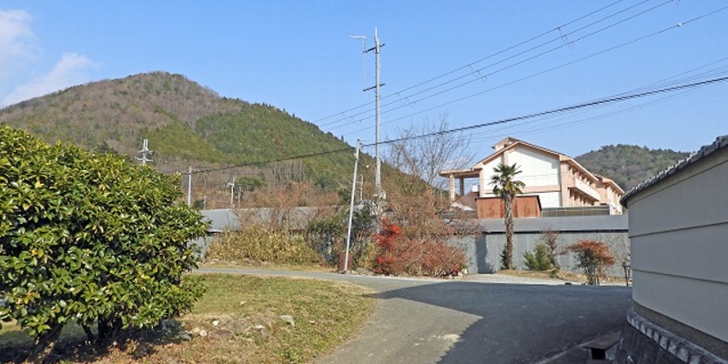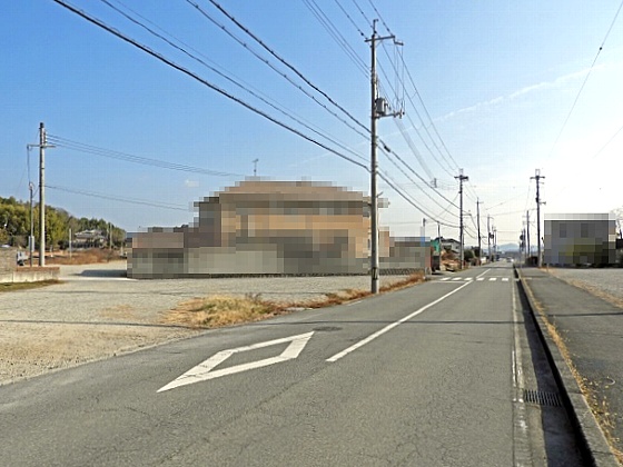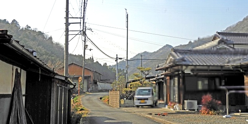 1本北側の集落内の通り沿いです。もう少し西には、ため池があります。
