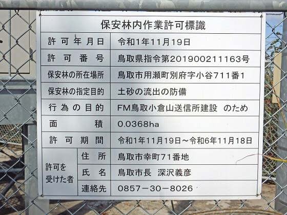 小倉山中継局は、鳥取市南部地域の難聴解消のため2020年4月1日に開局しました。
