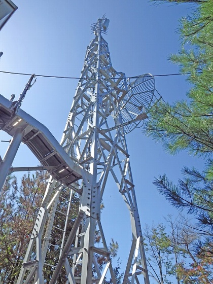 送信アンテナは、共用4L1段2面、受信は送信点で共用1.8mグリッドパラボラにて鳥取中継局(毛無山)です。
