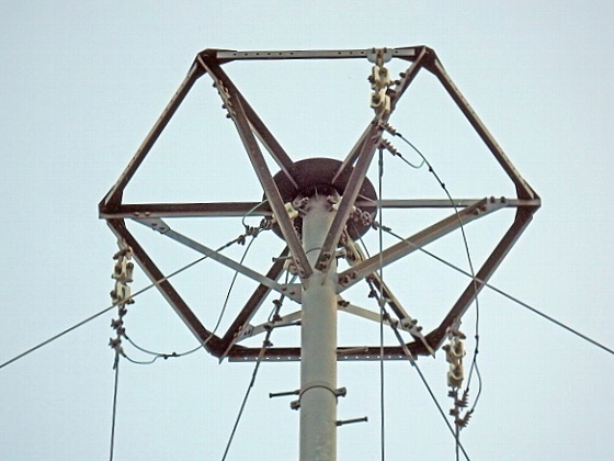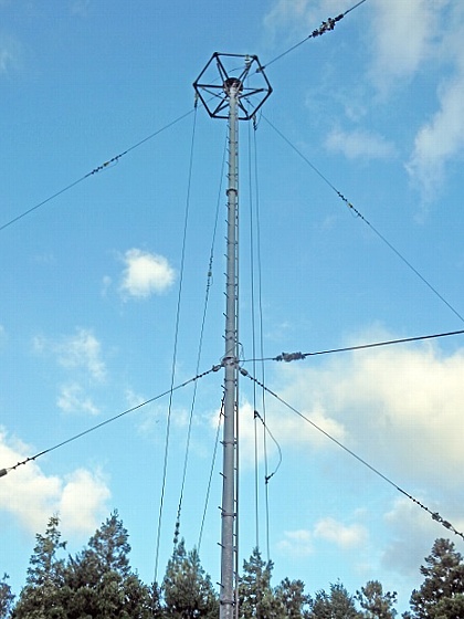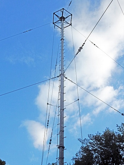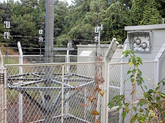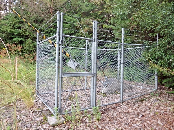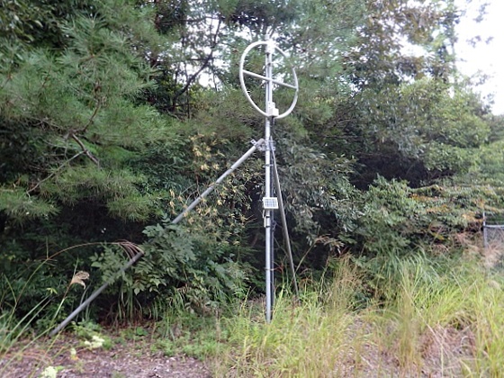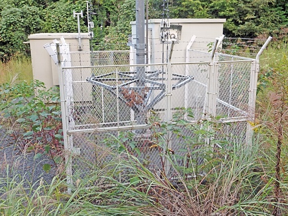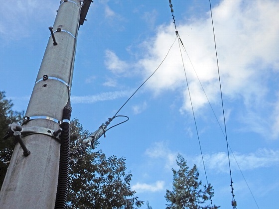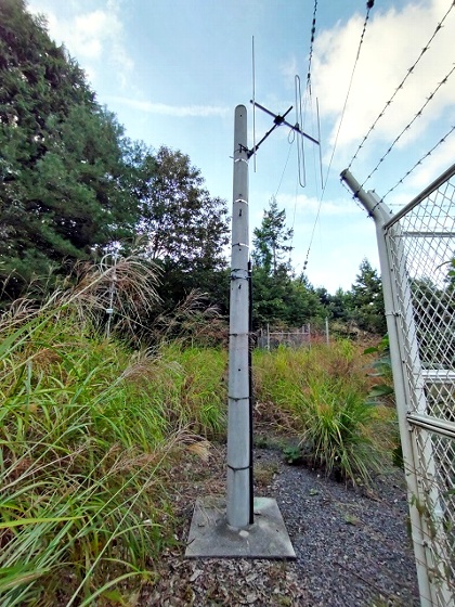 |  ワイヤーアンテナもあります。 |  支線基部です。 囲いがあります。動物対策でしょうか。 |