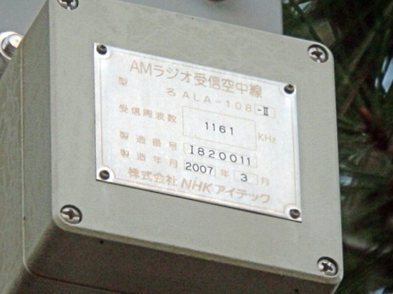NHK第1放送 1503KHz 50W 第2放送は、送信していません。