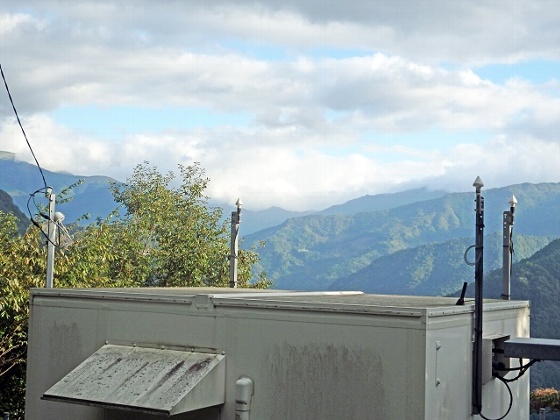遠景です。対面の山からの撮影です。 中継局は、山の中腹です。