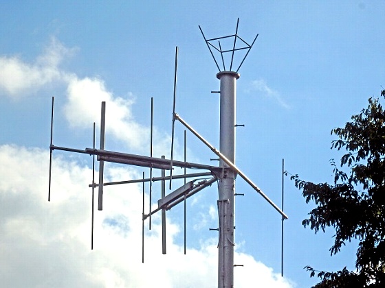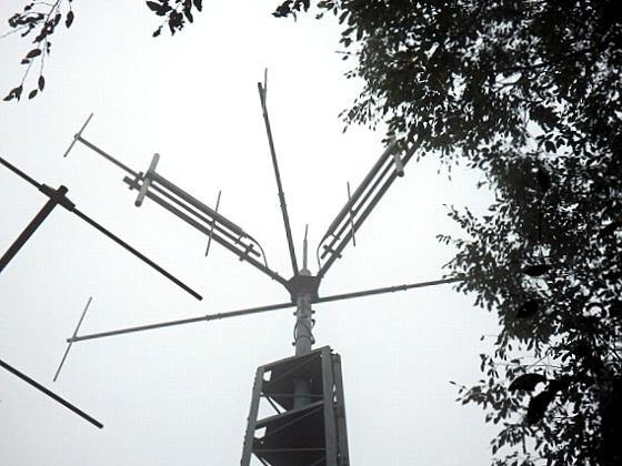 ![]() 送信アンテナを角度を変えて2枚。 3素子八木2面1段(垂直偏波)です。 |