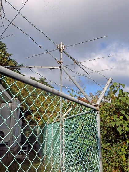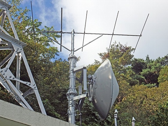 ![]() テレビ番組伝送用(受信)の2mプレートパラボラと思われます。 美馬町にある三頭山(さんとうざん)中継局併設の固定局をTTL受けです。 敷地内には、八木アンテナが2基設置されています。 |