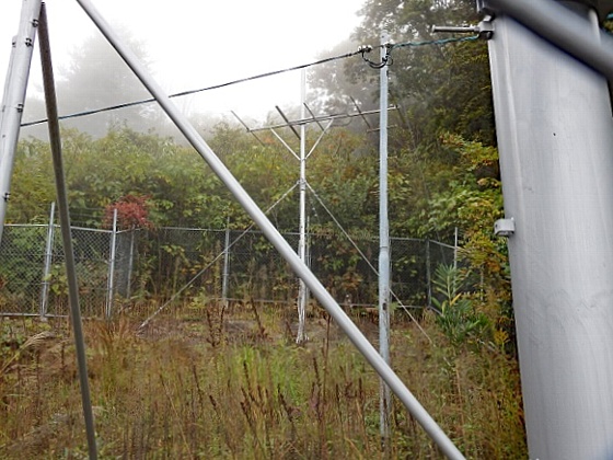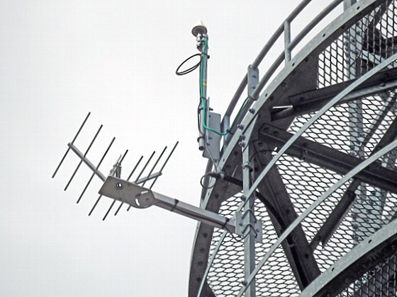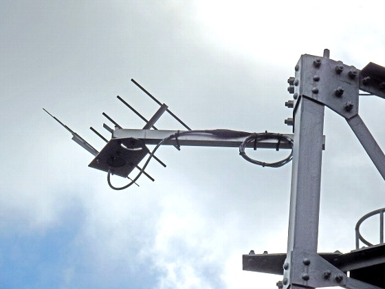 ![]() 上記画像の奥に見えている5素子八木アンテナです。手前の1基と合わせて NHK−FMの受信アンテナです。(徳島基幹局受け) |
