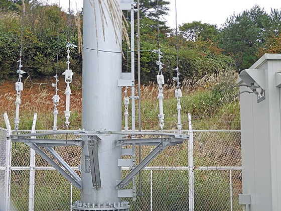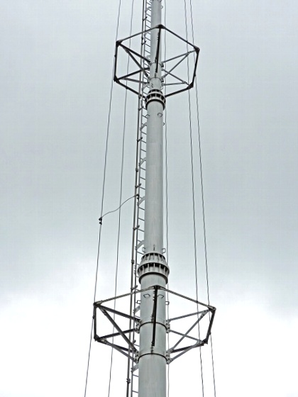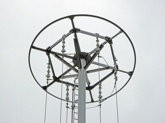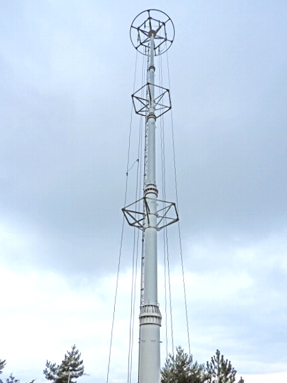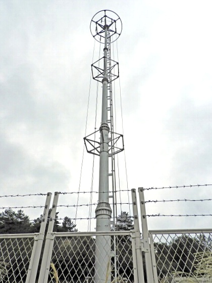 全景です。 円管柱30mです。 必要最小限の高さではないかと・・・。 送信周波数から計算すると、波長は約300mです。