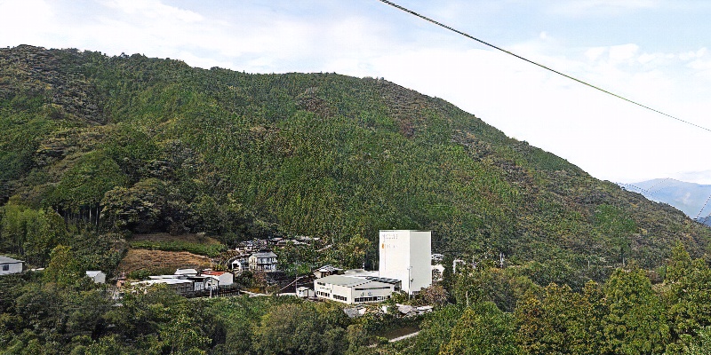 南側、山中から遠景です。 目立つ建物はJAの柚子選果場です。