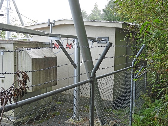 ![]() 局舎からテレビ鉄塔に繋がるラックです。 |