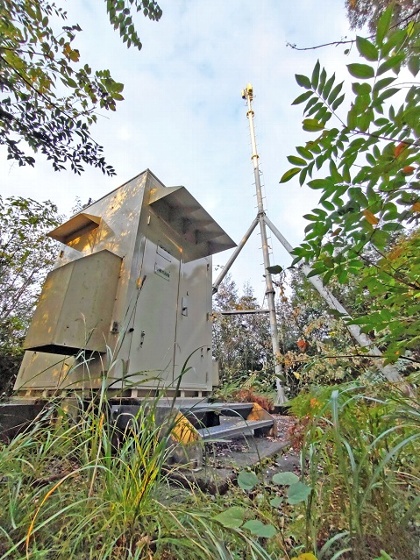 こちらは、南側からの遠景です。ラジオ塔の先端と同じ高さの左側、樹木が水平な部分に先端部がチラリと見えます。
